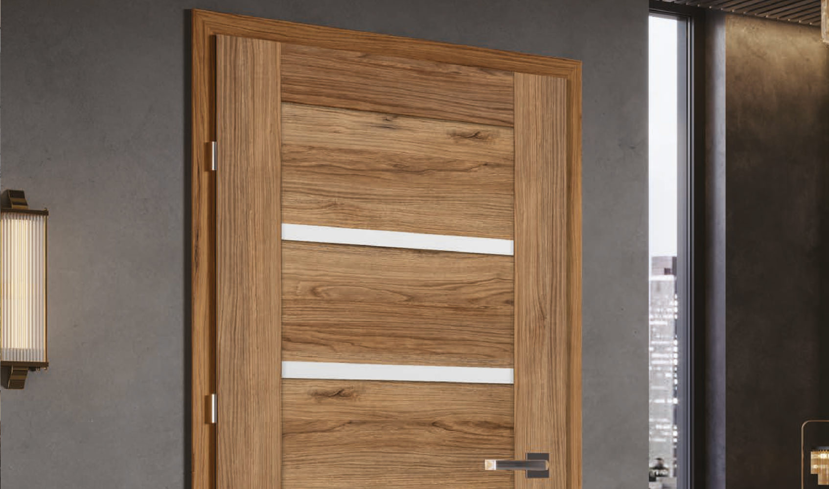 Drzwi Centurion charakteryzują się atrakcyjnym wzornictwem, szeroką paletą wykończeń i możliwością dopasowania wielu elementów – od rodzaju ościeżnicy, przez przeszklenia, po wykończenia strukturalne imitujące naturalne drewno.